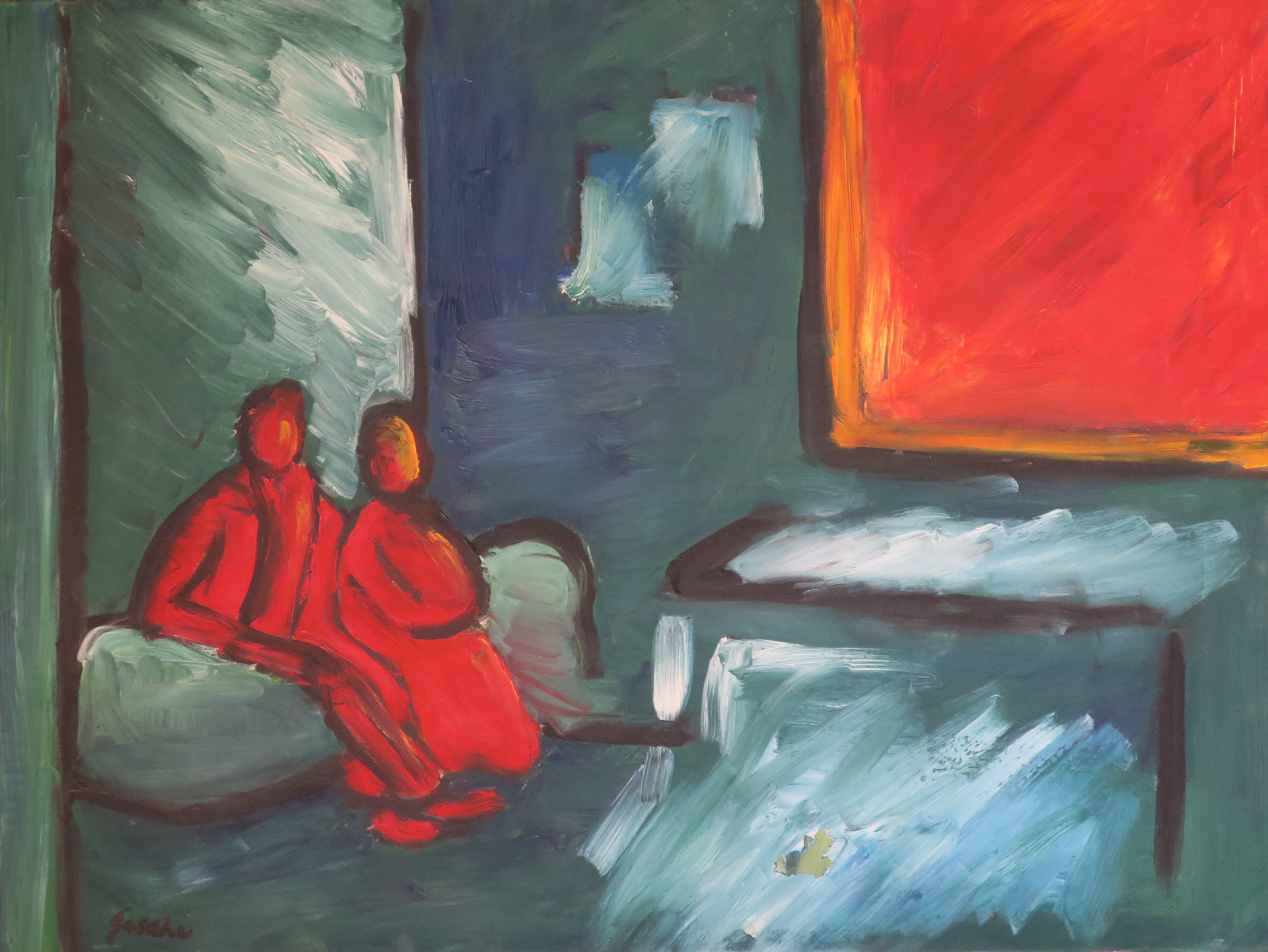 Paar im Zimmer (1987), Oel auf Leinwand, 60 x 80 cm